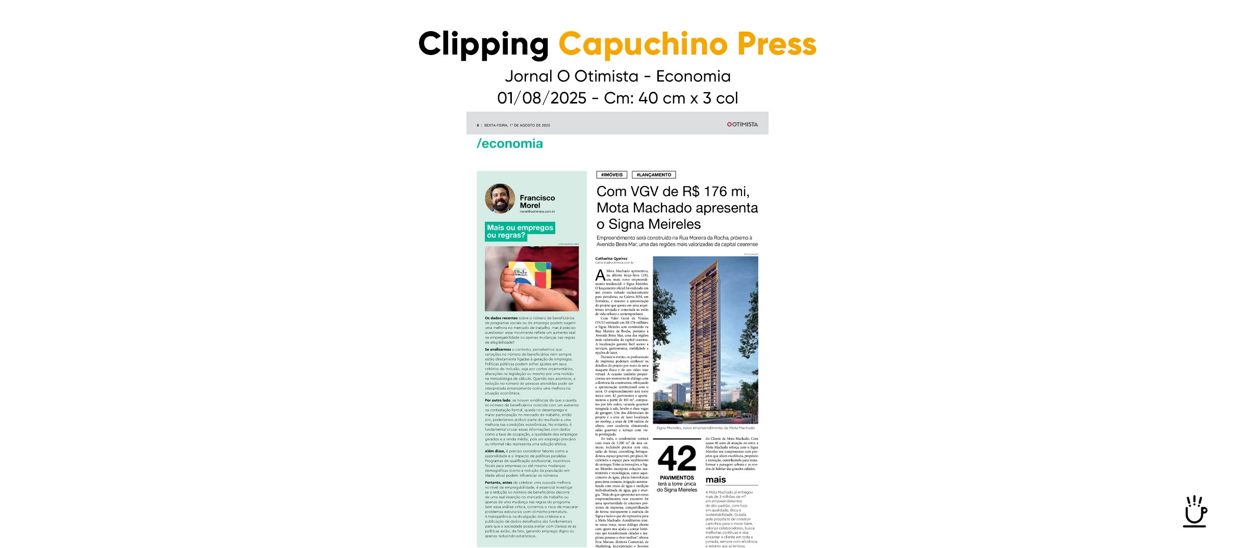 Esse case reforça a atuação da Capuchino Press como assessoria especializada no mercado imobiliário, com estratégia de narrativa, relacionamento qualificado com imprensa e presença em veículos de alta relevância.